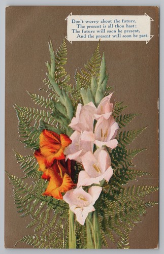 Greetings Orange And Pink Flowers Green Vines Vintage Postcard Ebay